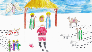 Featured artwork by Martha Bloch, winner of the 2024 Assumption Knights of Columbus “Keep Christ in Christmas” Poster Contest, Ages 8-10